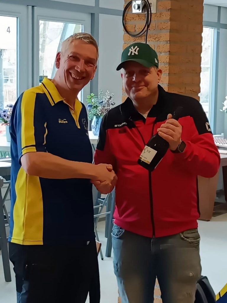 Onze tegenstander had bovendien heel sportief een fles (alcoholvrije) bubbels meegenomen voor de winnaar. Het bestuur zorgde daarnaast nog voor passende bloemen.
