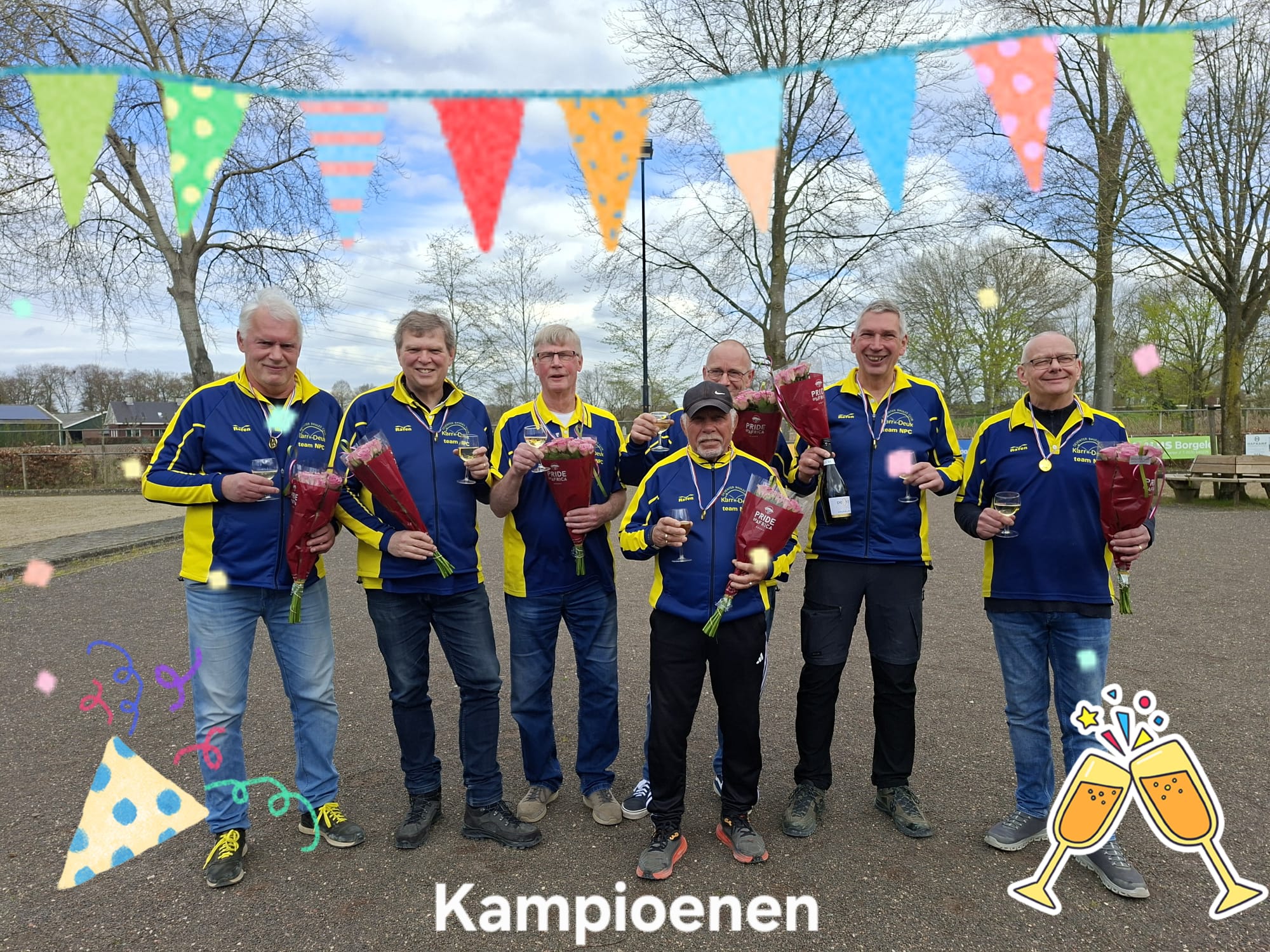 Het eerste team van Karro Deux is op zaterdag 4 april 2026 kampioen geworden in de 4e divisie. Er werd gespeeld tegen de nummer twee, Le Biberon. Voor Le Biberon was winst noodzakelijk om kampioen te worden, terwijl wij aan een gelijkspel voldoende hadden. Helaas konden Gilles en Jean-Pierre er niet bij zijn, maar Roberto en Ruud namen hun honneurs waar.