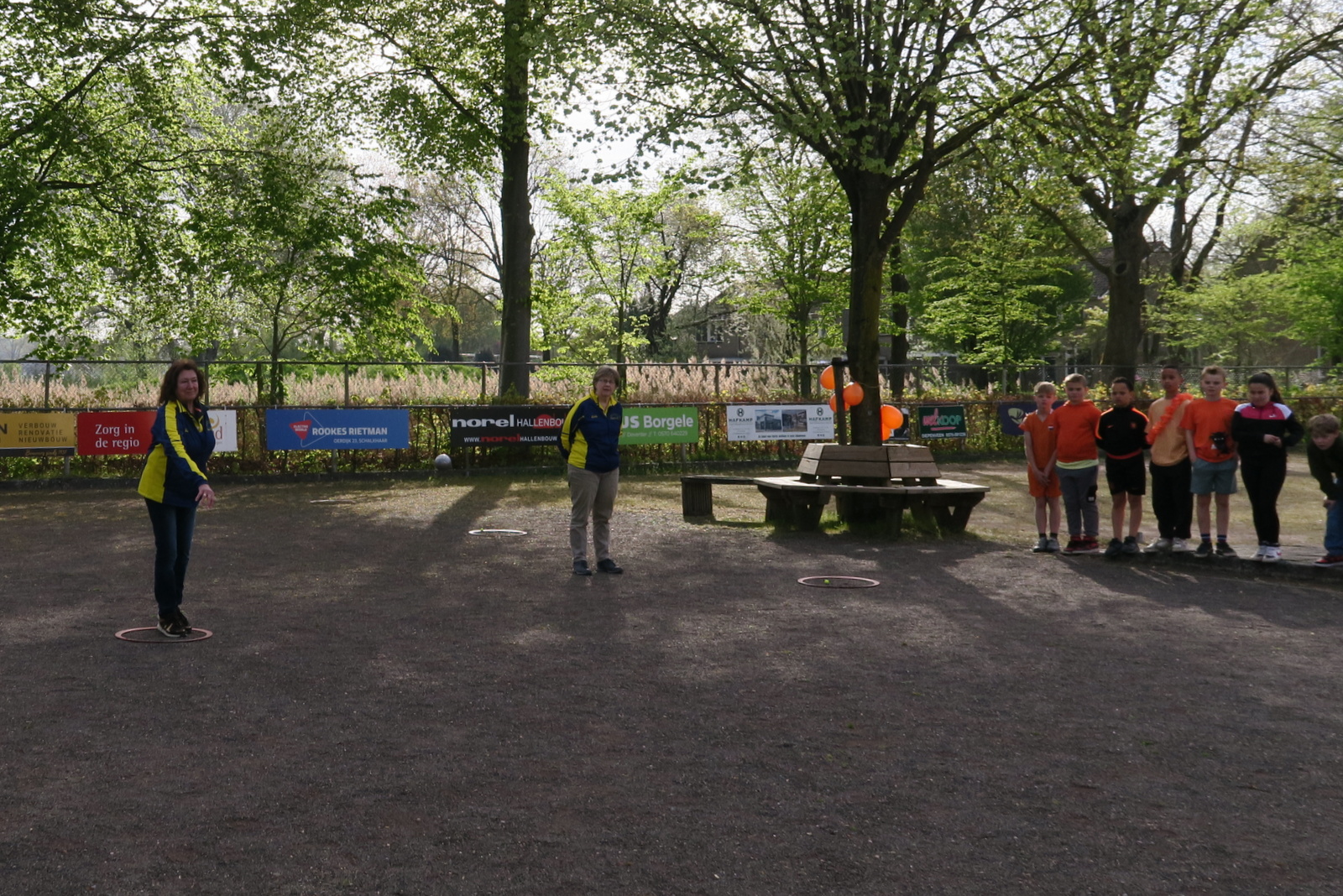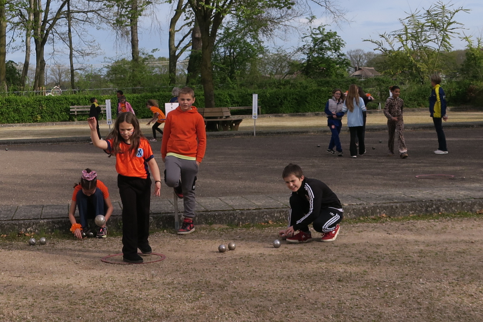 Vrijdagmorgen 17 april om 09.15 uur stonden wij (Maureen, Gerda, later Anita, Gerrie, Corry, Hennie en Annelies) er helemaal klaar voor: de eerste groep kinderen kwam eraan om kennis te maken met jeu de boules!