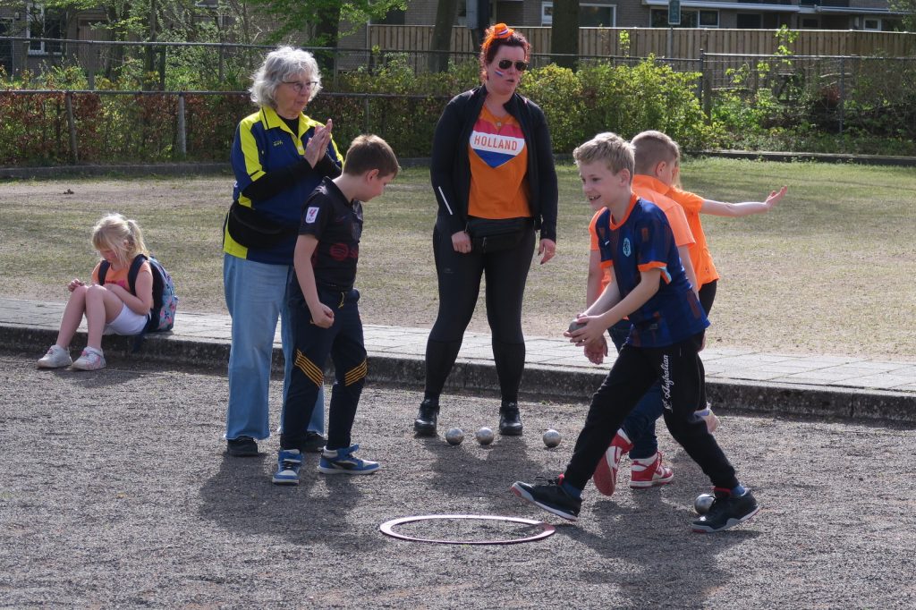 We begonnen samen op het middenpad met een korte uitleg over onze vereniging. Daarna gaven Hennie en Corry een demonstratie. Al snel bleek dat veel kinderen het spel al kenden – vaak van de camping – en enthousiast meededen.